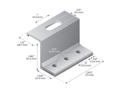 To accommodate various rib heights, VersaBracket™ VB-47 is 1.86″ high. The VB-47 offers various mounting face configurations with minimum purchase requirements.